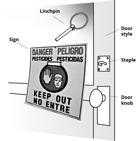Pesticide warning signs: greenhouse door handle